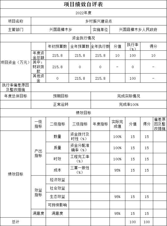 組織對“鄉(xiāng)村振興建設(shè)點(diǎn)”項(xiàng)目開展了部門評(píng)價(jià),涉及一般公共預(yù)算支出215.8萬元,政府性基金預(yù)算支出0萬元,國有資本預(yù)算支出0萬元。從評(píng)價(jià)情況來看,一是項(xiàng)目質(zhì)量目標(biāo)完成較好;二是群眾滿意度較高。發(fā)現(xiàn)的間題:績效評(píng)價(jià)的內(nèi)容上還有待于進(jìn)一步完善。下一步改進(jìn)措施:一是績效評(píng)價(jià)要確定科學(xué)完善的評(píng)價(jià)原則;二是績效評(píng)價(jià)方法上要注意適當(dāng)性、可操作性。
