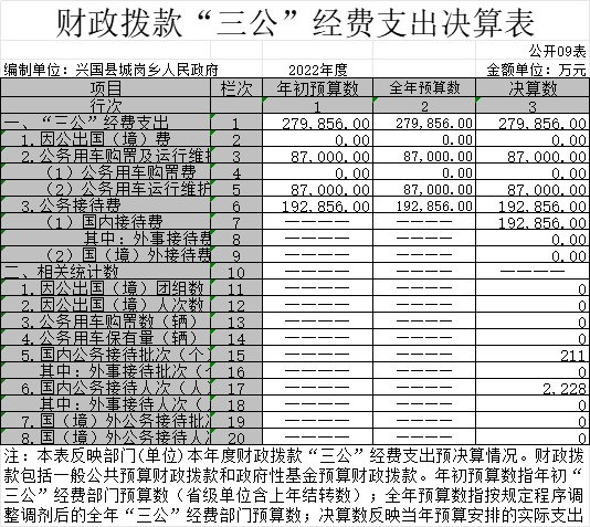 9.“三公”經(jīng)費(fèi)支出和機(jī)關(guān)運(yùn)行經(jīng)費(fèi)支出口徑必須予以說明。“三公”經(jīng)費(fèi)支出:指用財(cái)政撥款安排的因公出國(境)費(fèi)、公務(wù)用車購置及運(yùn)行維護(hù)費(fèi)和公務(wù)接待費(fèi)。其中,因公出國(境)費(fèi)反映單位公務(wù)出國(境)的國際旅費(fèi)、國外城市間交通費(fèi)、住宿費(fèi)、伙食費(fèi)、培訓(xùn)費(fèi)、公雜費(fèi)等支出;公務(wù)用車購置及運(yùn)行維護(hù)費(fèi)反映單位公務(wù)用車車輛購置支出(含車輛購置稅、牌照費(fèi)),按規(guī)定保留的公務(wù)用車燃料費(fèi)、維修費(fèi)、過橋過路費(fèi)、保險(xiǎn)費(fèi)、安全獎(jiǎng)勵(lì)費(fèi)用等支出;公務(wù)接待費(fèi)反映單位按規(guī)定開支的各類公務(wù)接待(含外賓接待)支出。
