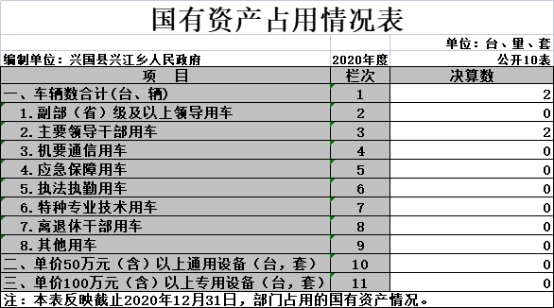 截止2020年12月31日,本部門國有資產(chǎn)占用情況見公開09表《國有資產(chǎn)占用情況表》。其中車輛主要是主要領(lǐng)導(dǎo)用車。