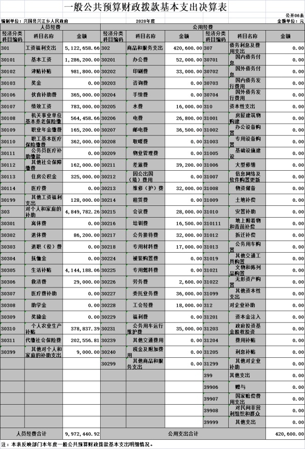 6.基本支出:指為保障機(jī)構(gòu)正常運(yùn)轉(zhuǎn)、完成日常工作任務(wù)而發(fā)生的人員經(jīng)費(fèi)和公用經(jīng)費(fèi)。其中:人員經(jīng)費(fèi)指政府收支分類經(jīng)濟(jì)科目中的“工資福利支出”和“對(duì)個(gè)人和家庭的補(bǔ)助”;公用經(jīng)費(fèi)指政府收支分類經(jīng)濟(jì)科目中除“工資福利支出”和“對(duì)個(gè)人和家庭的補(bǔ)助”外的其他支出。
