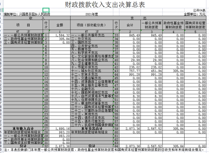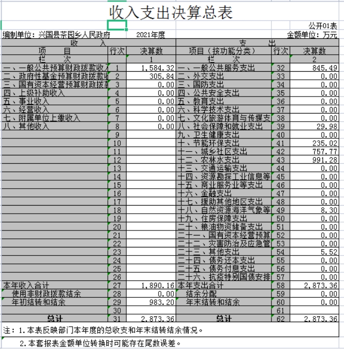 茶園鄉(xiāng)人民政府2021年度部門決算