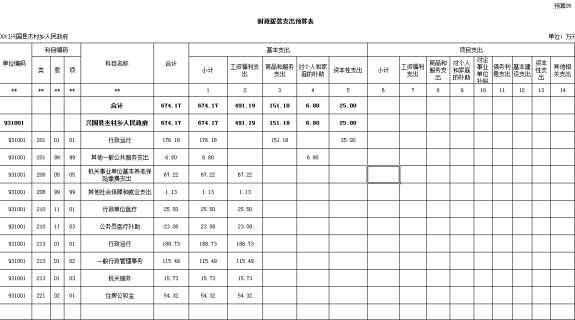 具體為:按支出項目類別及經濟分類科目劃分:基本支出674.14萬元,較上年預算安排增加了85.9萬元,其中:工資福利支出491.19萬元,較上年預算安排增加136.16萬元;商品和服務支出151.18萬元,較上年預算安排減少82.56萬元;對個人和家庭的補助6.8萬元,較上年預算安排增減少12.7萬元;資本性支出25萬元,較上年預算安排增加25萬元。