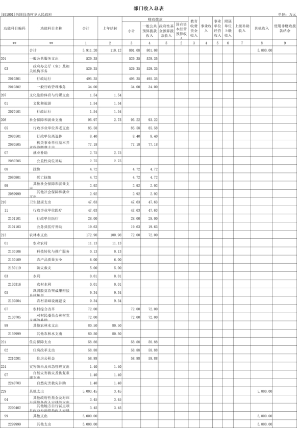 按支出功能分類科目劃分:一般公共服務支出529.35 萬元,較上年預算安排增加20.68萬元;社會保障和就業(yè)支出 95.97 萬元,較上年預算安排增加24.55 萬元;農(nóng)林水支出172.98 萬元,較上年預算安排增加172.98 萬元;衛(wèi)生健康支出 47.63 萬元,較上年預算安排增加 10.36萬元;住房保障支出58.88萬元,較上年預算安排增加0萬元;災害防治及應急管理支出1.4萬元,較上年預算安排增加 1.4 萬元;其他支出 5003.45萬元,較上年預算安排增加 1003.45 萬元。
