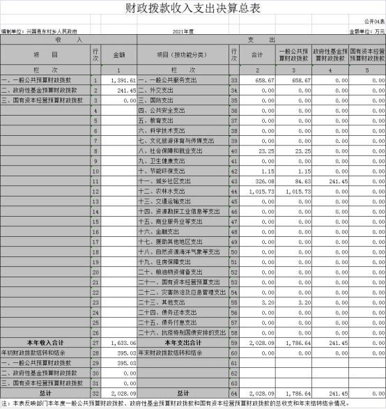 東村鄉(xiāng)人民政府2021年度決算