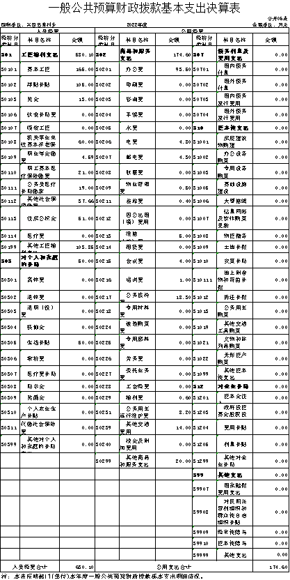 六、一般公共預算財政撥款基本支出決算表