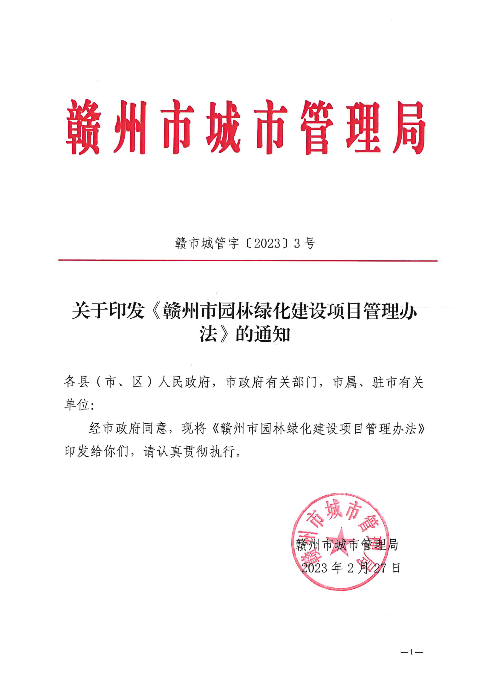 【有效】【規(guī)范性文件】關(guān)于印發(fā)《贛州市園林綠化建設(shè)項(xiàng)目管理辦法》的通知