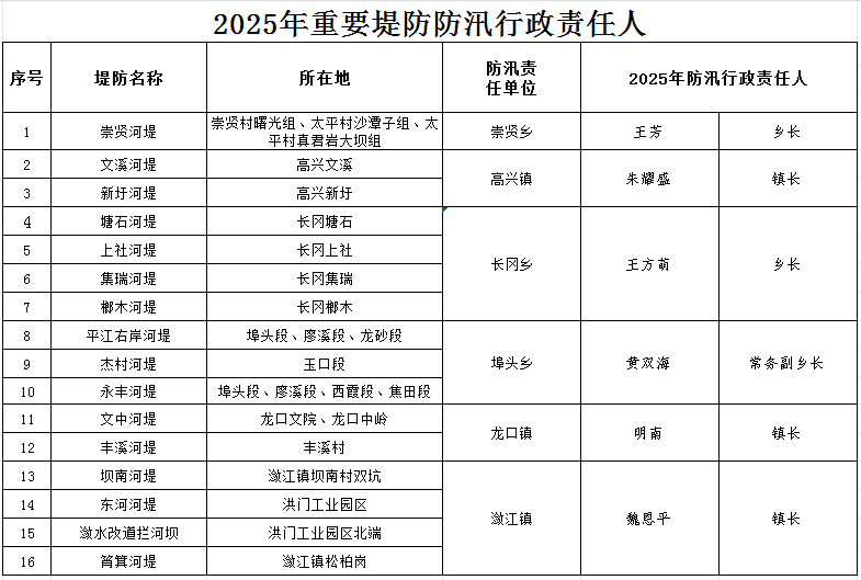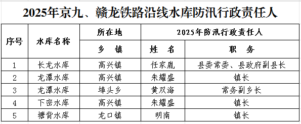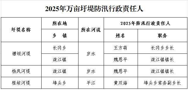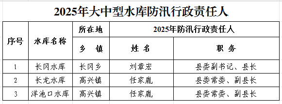 【公告公示】2025年度防汛抗旱行政責(zé)任人公示