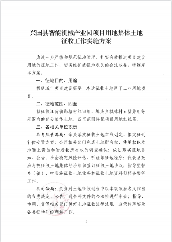 【有效】興國縣智能機械產業園項目用地集體土地征收工作實施方案(興府辦字【2022】53號)