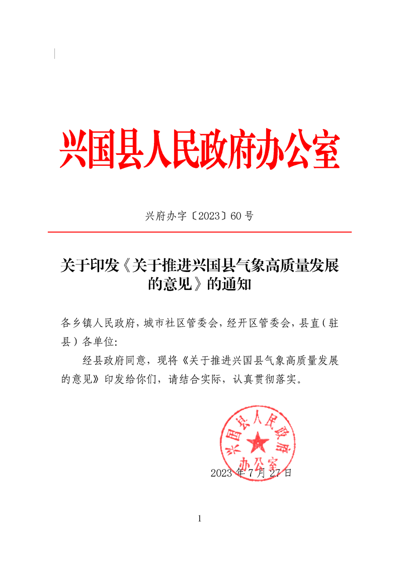 【有效】關于印發《關于推進興國縣氣象高質量發展的意見》的通知