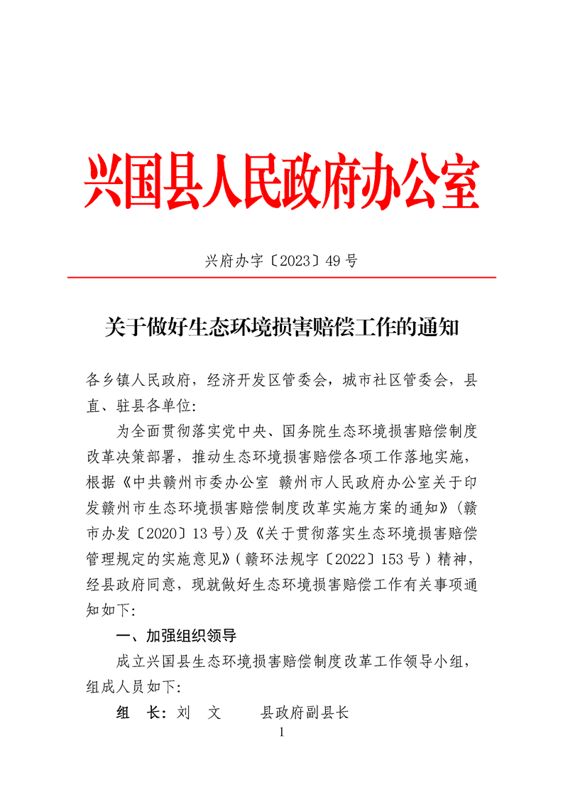 關于做好生態環境損害賠償工作的通知