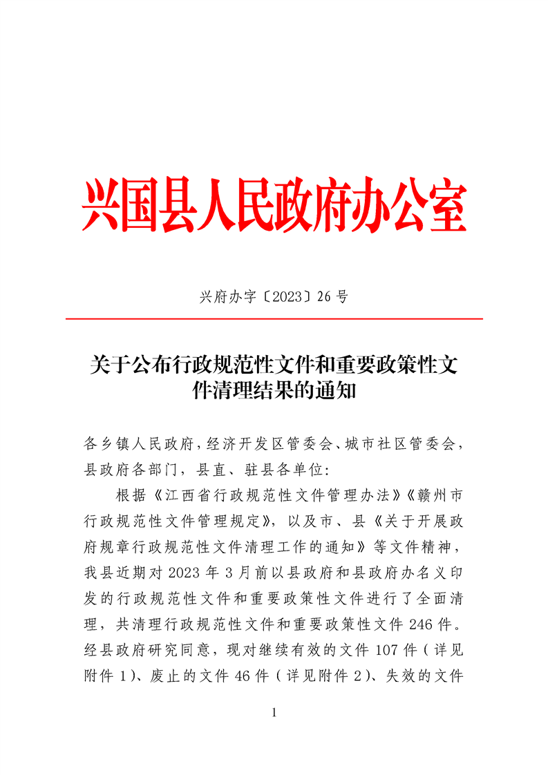 【規范性文件清理】關于公布行政規范性文件和重要政策性文件清理結果的通知