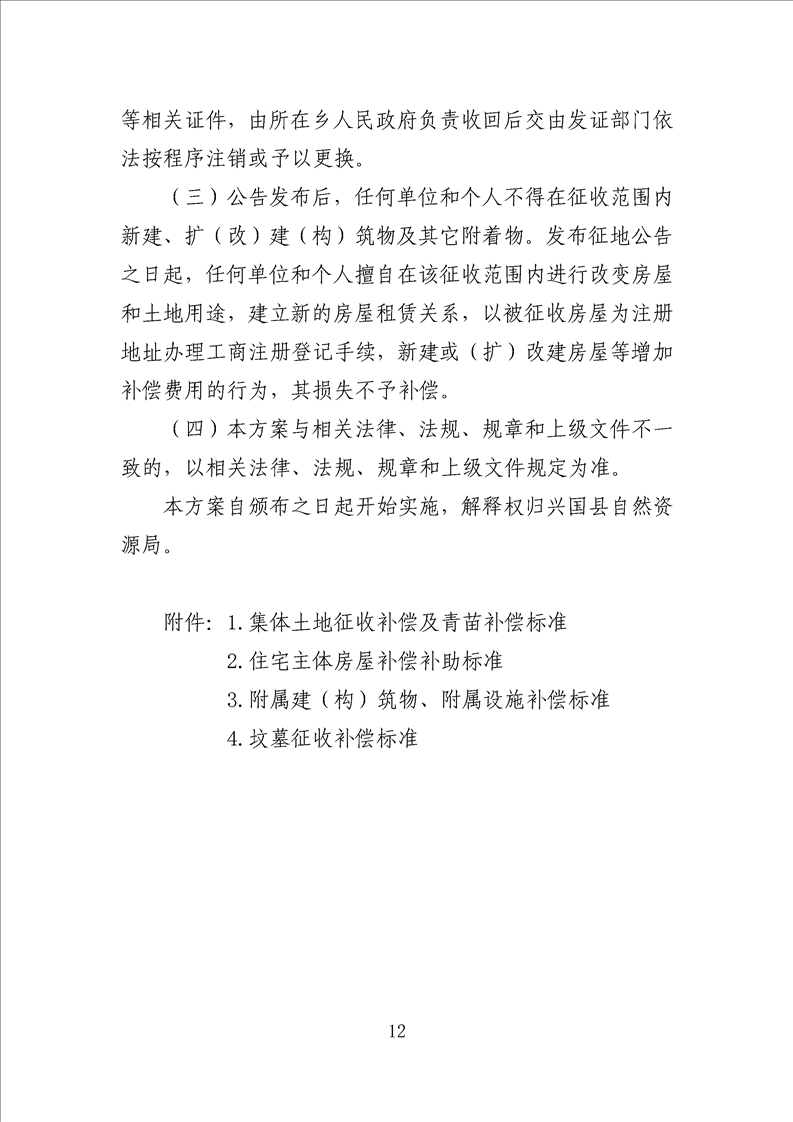 【有效】關于印發《G356湄西線興國均村至五里隘公路改建工程集體土地、地上建(構)筑物及附著物征收補償安置方案》的通知