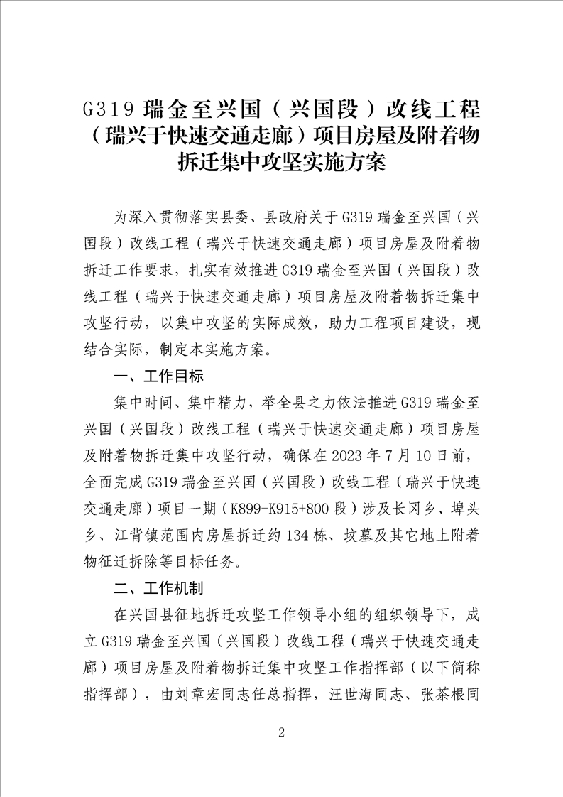 關于印發《G319瑞金至興國(興國段)改線工程(瑞興于快速交通走廊)項目房屋及附著物拆遷集中攻堅實施方案》的通知