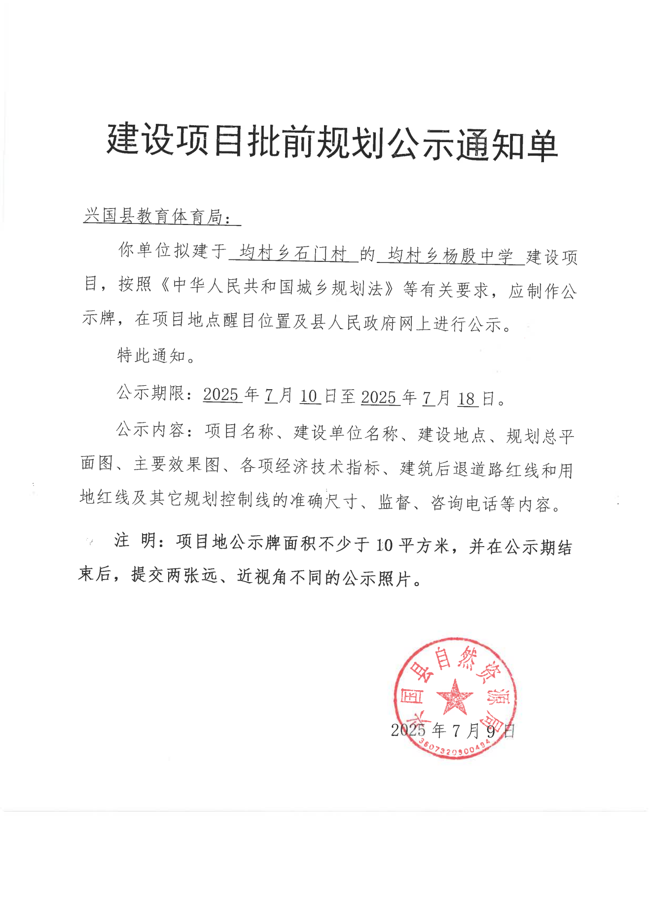 建設(shè)項(xiàng)目批前規(guī)劃公示通知單