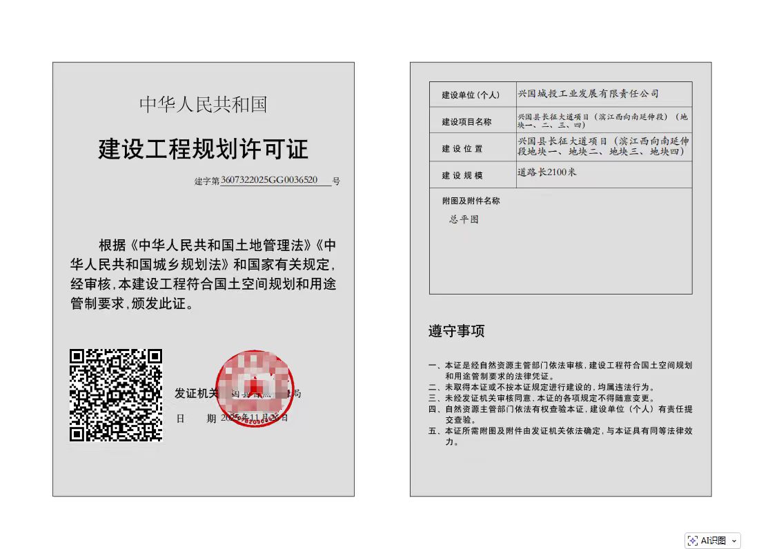(興國縣長征大道項目(濱江西向南延伸段)(地塊一、二、三、四))建設工程規劃許可批后公布