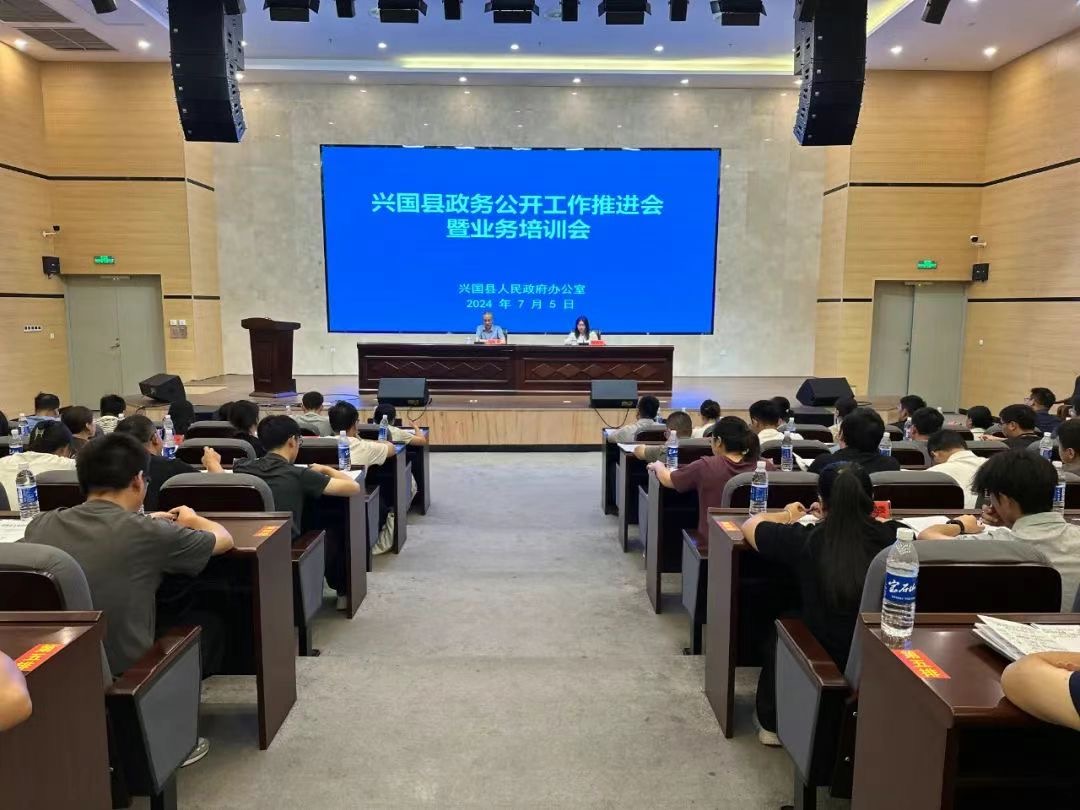 為進一步強化基層政務公開標準化規范化建設,全面提升我縣政務公開工作隊伍業務素質和能力水平,推動政務公開工作落實落細,7月5日上午,興國縣召開全縣政務公開工作推進會暨業務培訓會。縣政府辦黨組書記、主任余曉龍出席會議并講話。各鄉鎮人民政府,經濟開發區、城市社區管委會,縣政府各部門、縣直(駐縣)相關單位分管負責同志和業務骨干共計120余人參加培訓。