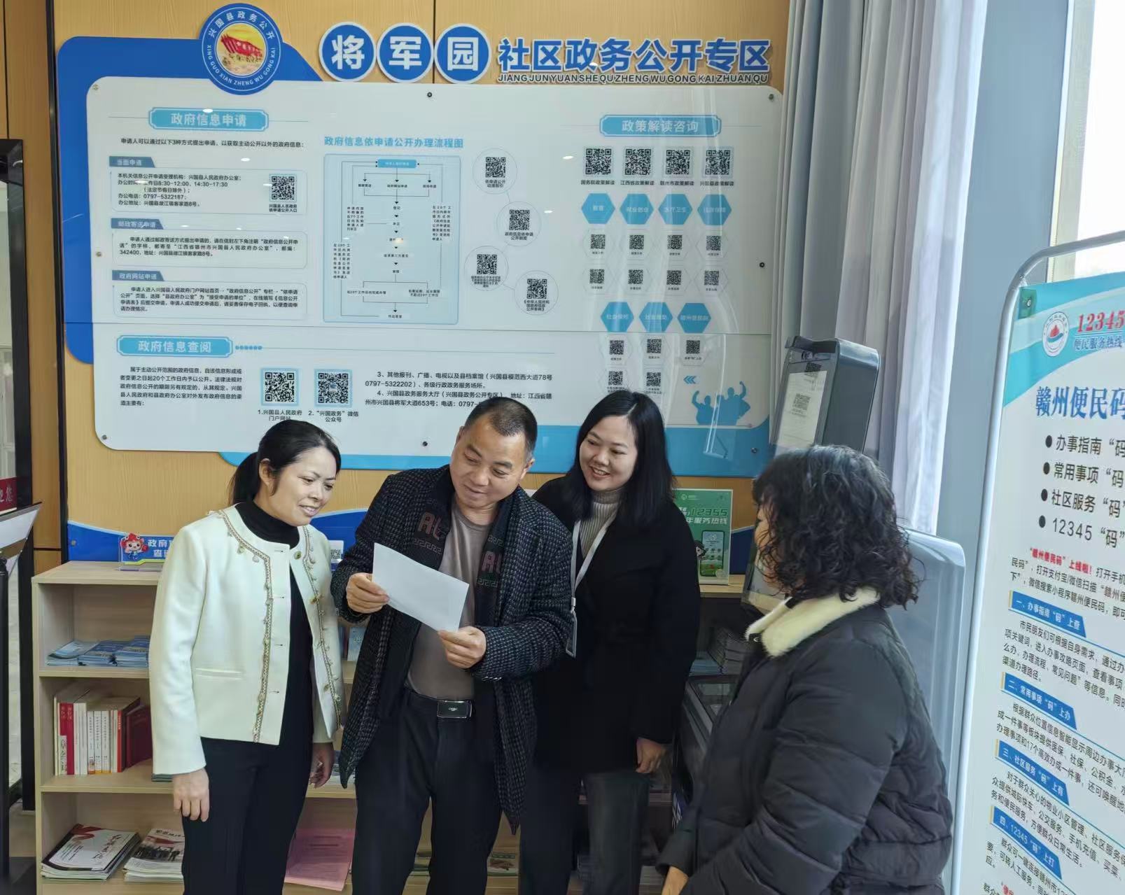 12月30日,興國縣城市社區開展“政府開放日”活動。此次活動邀請了縣政協委員、瀲江鎮人大代表、居民代表和群眾等30余人參加。通過“實地觀摩+座談交流”等方式,讓代表們零距離感受政務公開,共話基層治理新舉措。